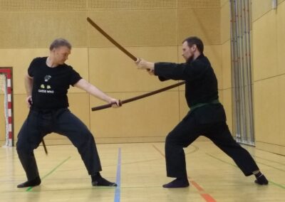 Deswegen werden die Techniken, neben Einzelübungen, vorrangig mit Partner unterrichtet und geübt.
